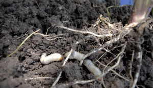 Cuando estamos revisando un cultivo que está en etapa vegetativa o en floración, si en el 80 % o más de los muestreos hay larvas y sobre todo si estamos encontrando 4 o más larvas de gallina ciega por planta, estamos hablando de un problema severo de plagas.