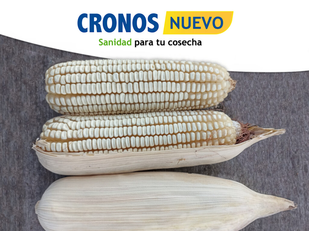 Cronos es un híbrido de maíz cristalino dentado diseñado para destacar en las zonas tropicales. Su ciclo intermedio, capacidad de adaptarse a condiciones extremas y resistencia a enfermedades foliares lo convierten en una opción confiable. Con su planta robusta, mazorca grande y vistosa, y excelente sanidad, Cronos ofrece altos rendimientos en grano y forraje, incluso en suelos pesados o con lluvias irregulares.