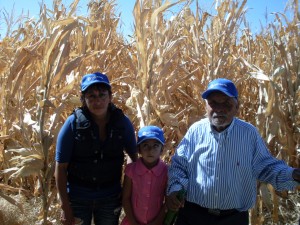 En tres tablas adicionales el Ing. González instaló riego por goteo. En estos terrenos el maíz se sembró en seco y se regó paulatinamente mediante el sistema, evitando por completo los problemas mencionados arriba, asegurando una emergencia más pareja y un aprovechamiento óptimo de la semilla. Con el sistema de goteo la humedad difícilmente llega a la raya del surco y solo se mantiene húmedo el lomo del surco. (Hemos visto en otros casos, como por ejemplo la Expo Irapuato 2011, que, si no llueve, es importante mojar todo el terreno con el goteo, incluso entre mangueras, para que las raíces del maíz crezcan y así aprovechen todo los nutrientes y el espacio de anclaje de todo el terreno. Si el bulbo de humedad es demasiado pequeño, el maíz no se desarrolla adecuadamente. Nota de la redacción.)
