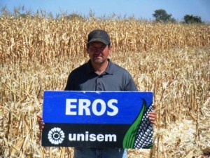 Roberto y Manuel H., Rancho Cerro de las Liebres, San Juan de los Lagos, Jalisco: «Eros nos gusta por su planta, mazorca y cuatera, tiene aguante a la sequia, seguiremos sembrando Unisem el siguiente temporal de milpa.» Los hermanos H. cosecharón 89.3 toneladas por hectárea con Eros, con una población baja de 72 mil plantas por hectárea y en un estado de madurez tierno.